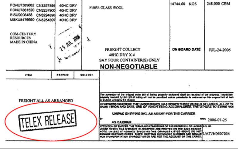 Telex Release: thông báo điện tử cho phép giao hàng tại đầu đến