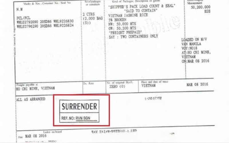 2.3. Surrendered Bill of Lading (Vận Đơn Đã Nộp Lại)