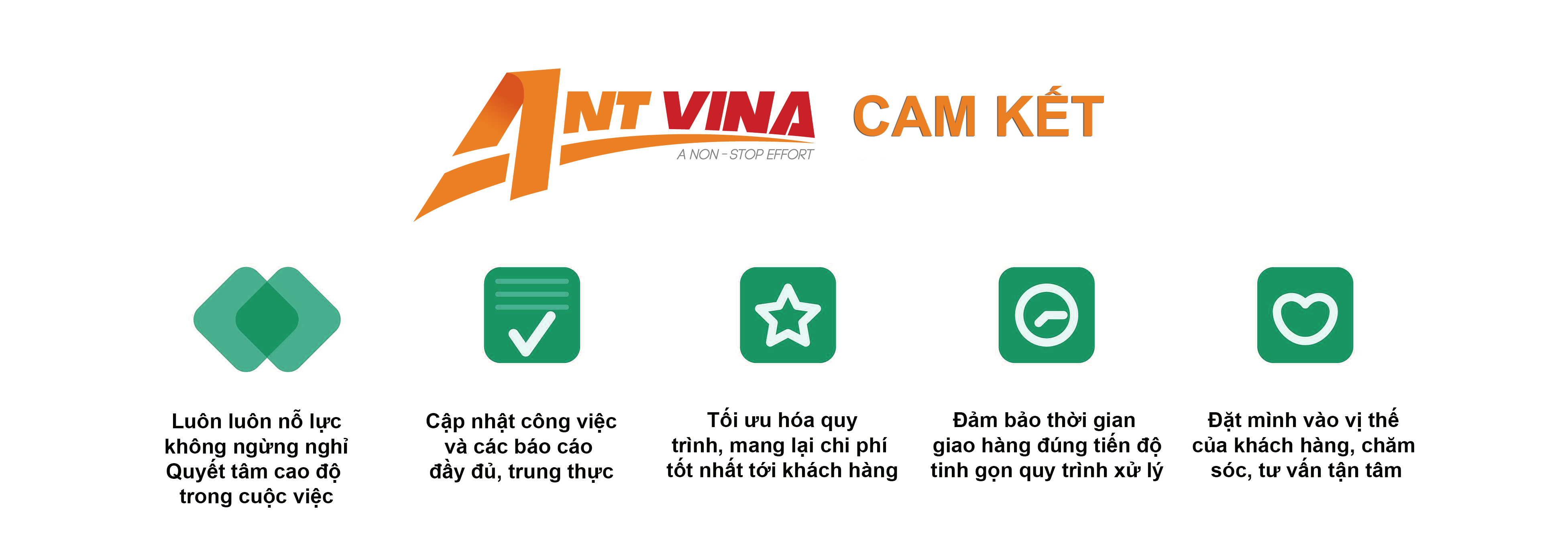 With the motto “Continuous efforts”, each member of ANT VINA Logistics always puts themselves in the position of customers to be able to understand and accompany sustainably, bringing more value than simply using the service. . Not racing “trend”, following trends, we focus on core values, technology solutions and professional services.