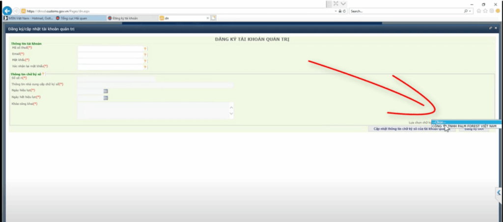 Hướng dẫn đăng ký tài khoản quản trị trên hệ thống VNACCS