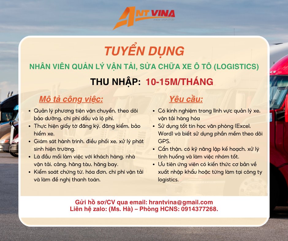 - Fanpage: https://www.facebook.com/antvinalogistics