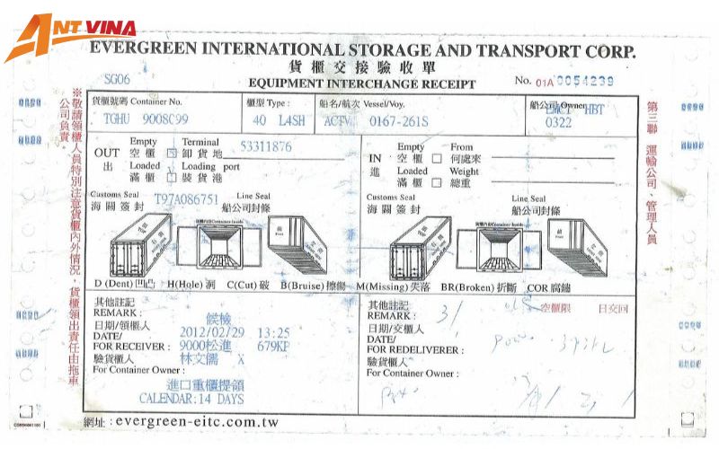 Phiếu này được lập tại thời điểm container được giao hoặc nhận, để xác định rõ tình trạng container (có bị móp méo, rách, gỉ sét hay không) cũng như thời gian, địa điểm, người giao – người nhận. Đây là chứng từ pháp lý quan trọng, giúp quy trách nhiệm nếu phát sinh hư hỏng hoặc tranh chấp liên quan đến container trong quá trình sử dụng.